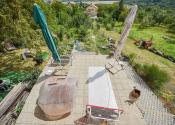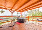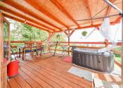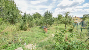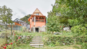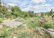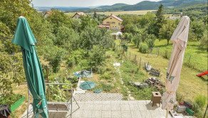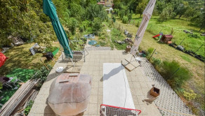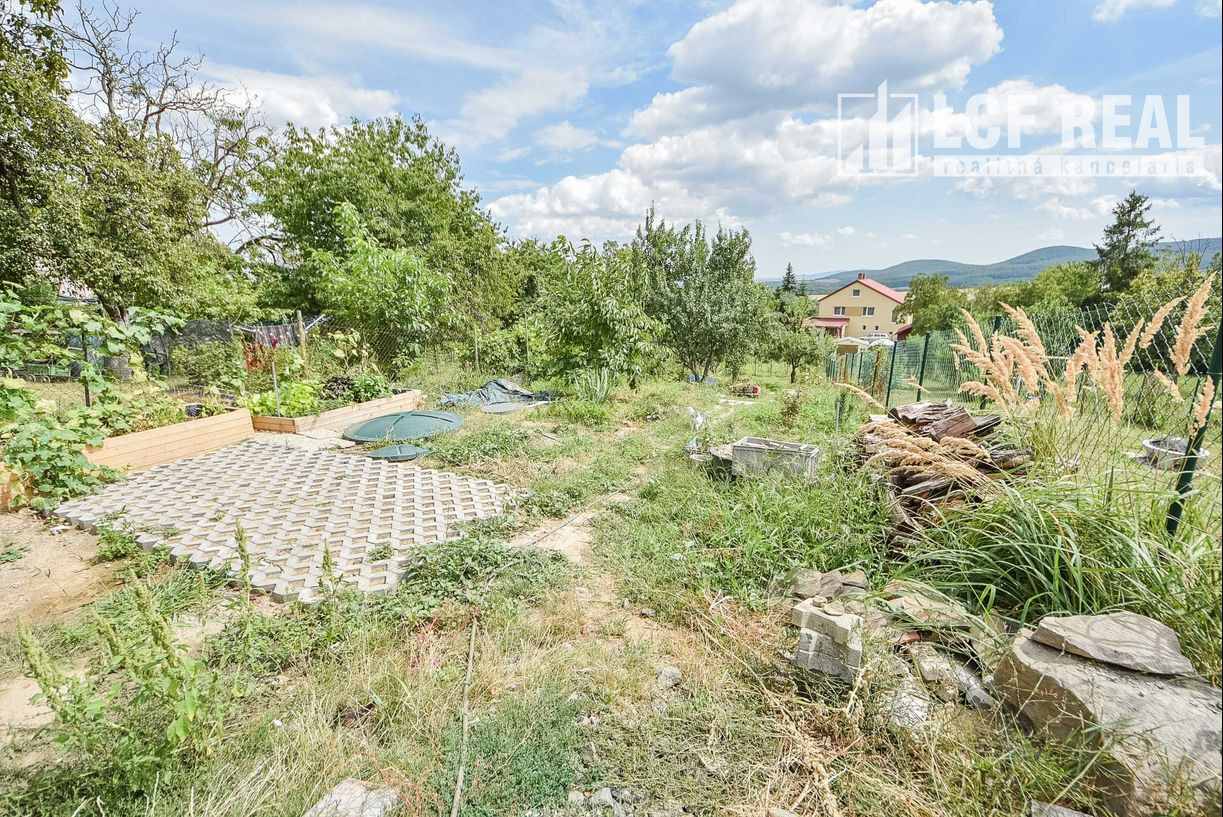 Za domom je situovaná vonkajšia terasa s výmerou 32,5 m² pod ktorou sa nachádza sklad náradia s výmerou 11,7 m² a sklad s výmerou 19,7 m². Na pozemku rastú rodiace ovocné stromy a kry vrátane vyvýšených záhonov.