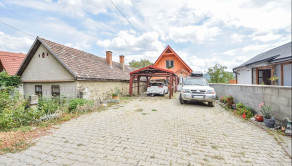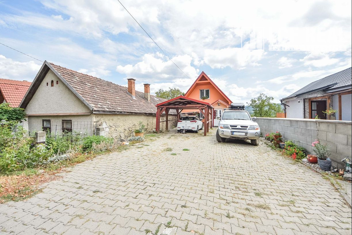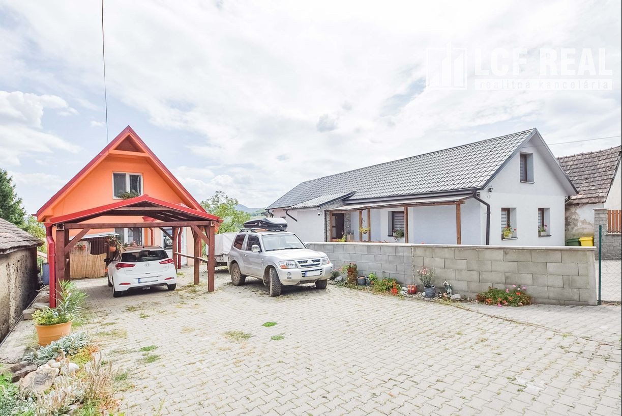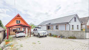 Vstup na pozemok s autom je cez krídlovú bránu s možnosťou pohodlného parkovania troch áut. Na pozemku pred domom sa nachádza prístrešok na jedno auto. Pod vrchnou terasou sa nachádza dielňa s výmerou 20,3 m².